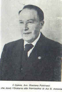 In Aci Sant'Antonio è stato un illustre figlio di questa terra, Mons. Giovanni Pulvirenti che, con intuito soprannaturale, ha pensato ai fanciulli ed ha approntato, a sue spese, e donato alla nostra comunità l'Oratorio Festivo, sotto il titolo di Gesù Bambino, che fu solennemente inaugurato il 18 novembre 1906. Egli, vicerettore del Seminario di Acireale, ogni sabato veniva a piedi in Aci S. Antonio per occuparsi dei ragazzi, confessarli, celebrare per loro la S. Messa festiva, comunicarli, insegnare il catechismo, ecc. Fondò per i giovani il circolo «Religione e Patria», organizzò feste di Prima Comunione, Esercizi spirituali, premiazioni, rappresentazioni teatrali; scrisse il «Manuale degli Oratori festivi» che fu molto apprezzato al «Congresso Nazionale degli Oratori Festivi» di Milano. Mons. Pulvirenti gestì direttamente l'Oratorio fino al 1911, quando fu eletto Vescovo di Anglona e Tursi. Gli successe, nella direzione dell'Oratorio, il giovane sacerdote Giuseppe Di Bella, che era stato il suo più valido collaboratore, e che continuerà l'opera per circa 50 anni. Con lettera 25-8-1912 diretta al Vescovo di Acireale, Mons. Pulvirenti cedette alla Parrocchia l'Oratorio e il Santo Vescovo Mons. Arista accettò l'offerta. Mons. Pulvirenti non riuscì a perfezionare l'atto di donazione alla Parrocchia e, alla sua morte, l'oratorio rimase in eredità al fratello, Comm. Avv. Gaetano Pulvirenti, mentre continuava la sua attività, sotto la direzione del P. Di Bella.